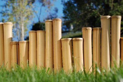 - Border edging constructed from 1" diameter bamboo poles that have been capped and connected with heavy gauge stainless steel wire.